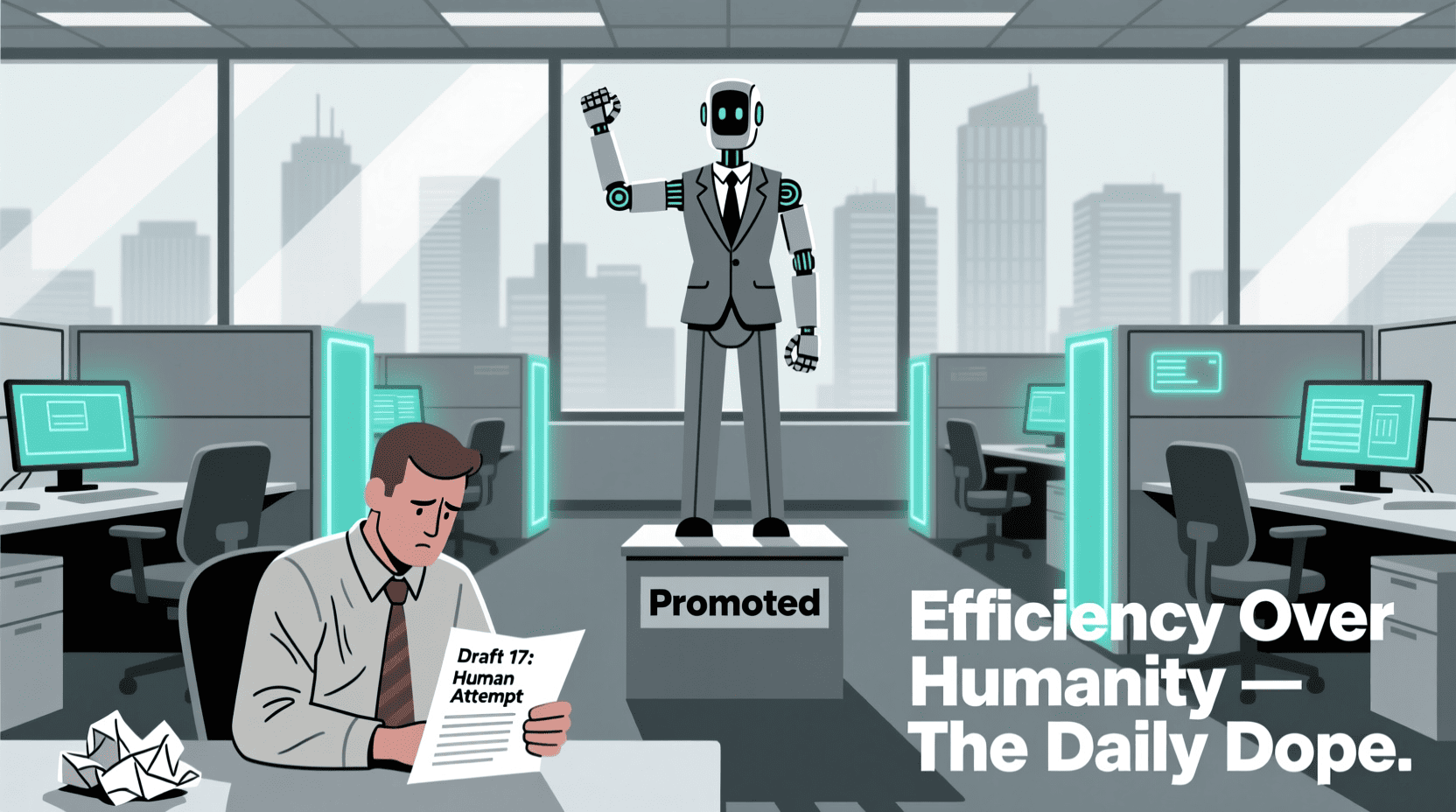 Let’s be clear: SynergiCorp doesn’t care about better speeches. It cares about control. An AI doesn’t unionize. An AI doesn’t quit. An AI doesn’t ask, “Why are we doing this?”