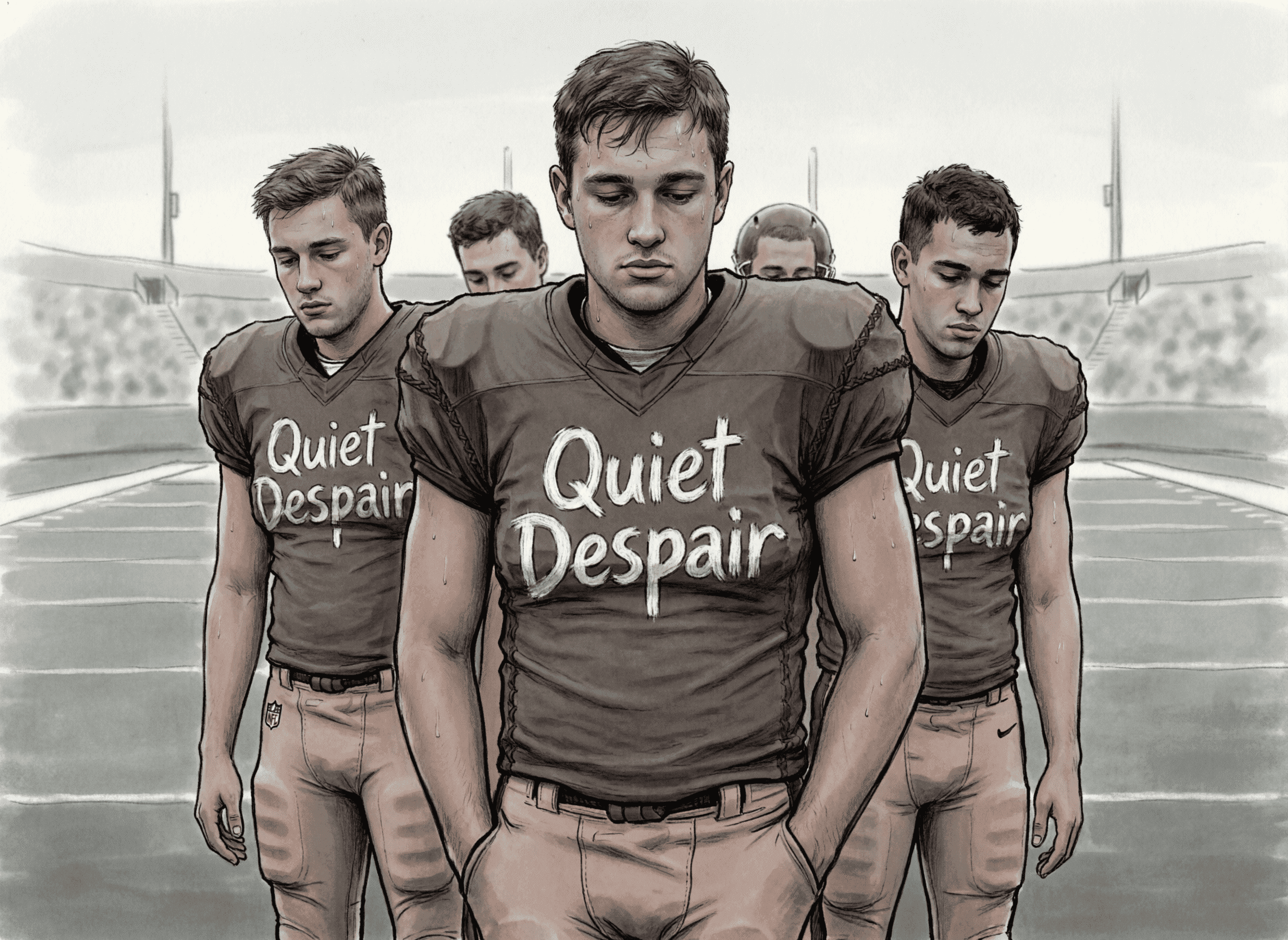 Worse: the league sells matching “Quiet Despair” loungewear for fans—because if you can’t talk about your feelings, you might as well dress like someone who also can’t.